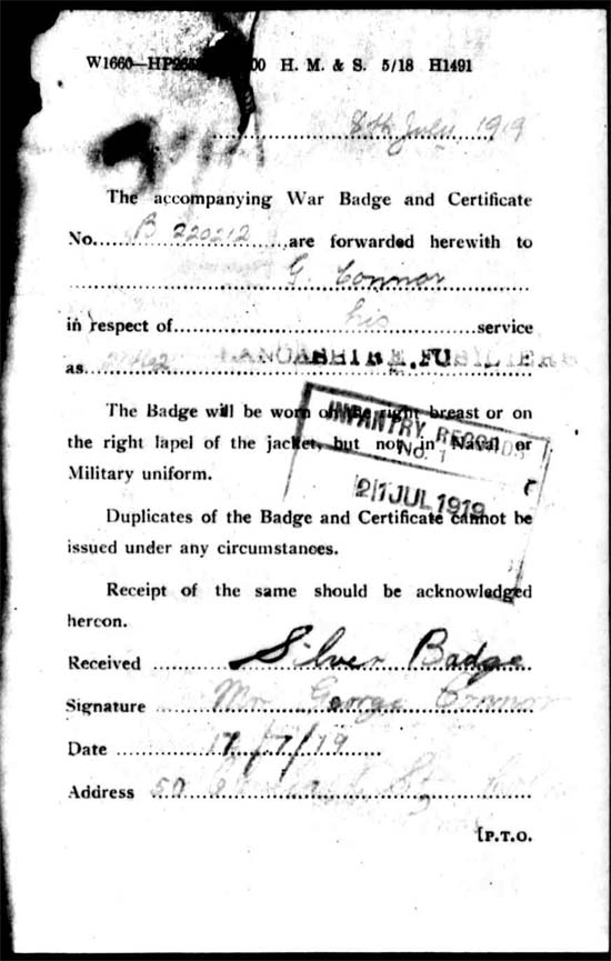 21462 Pte George Connor George Connor was 27 years old, married with 3 children when