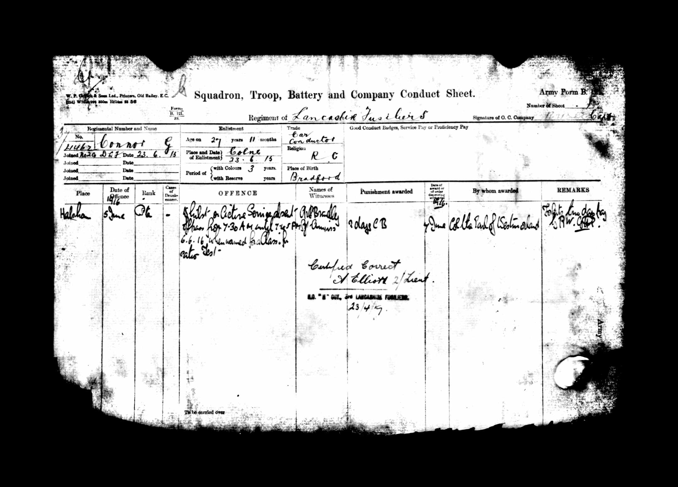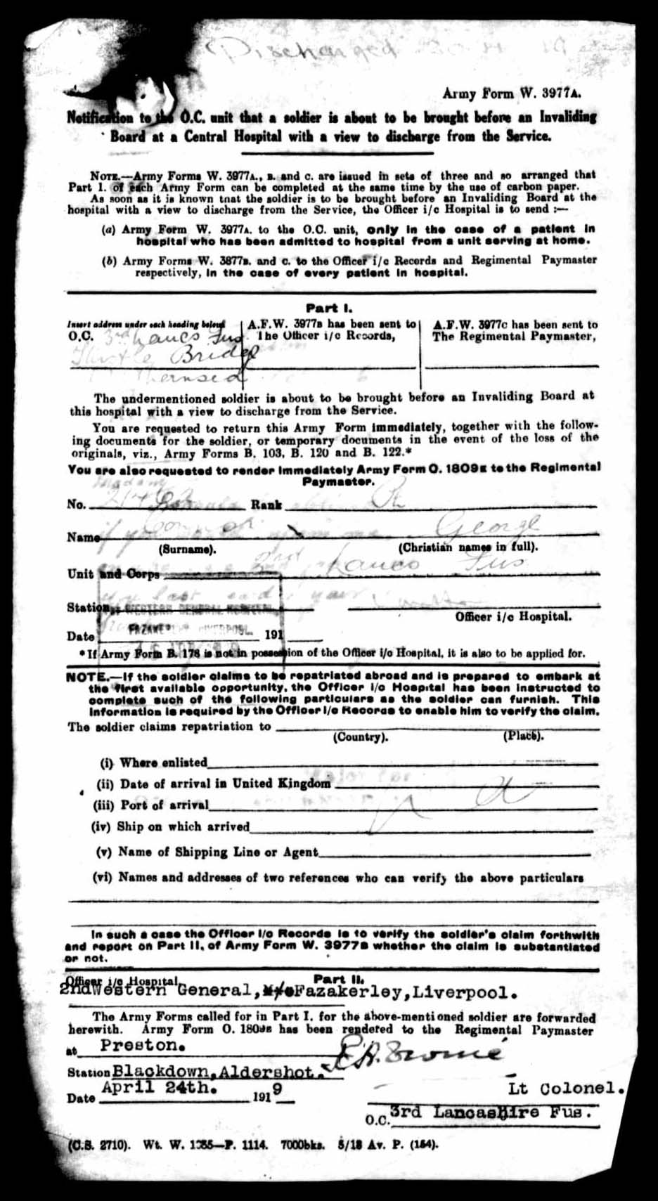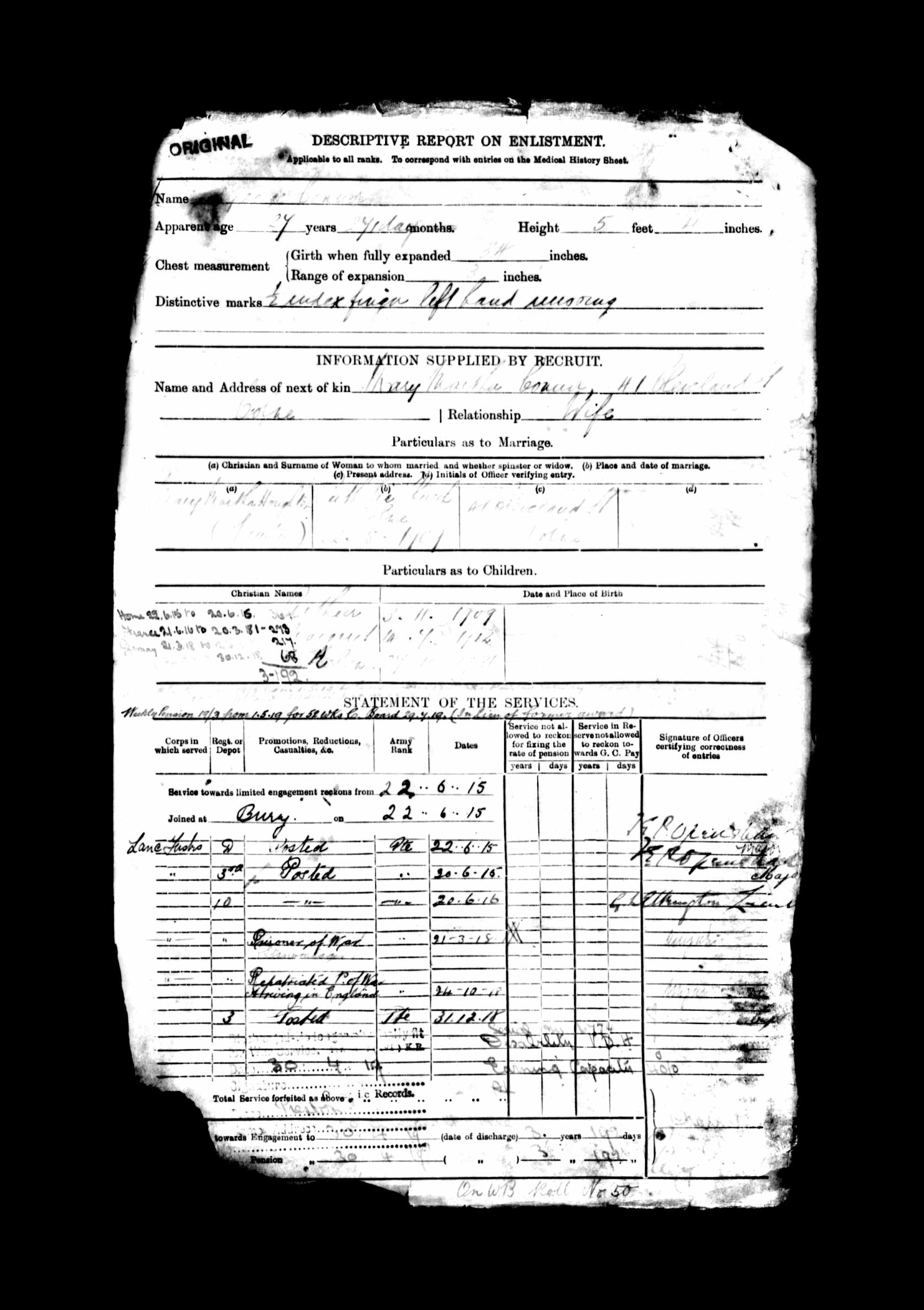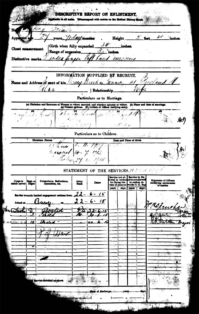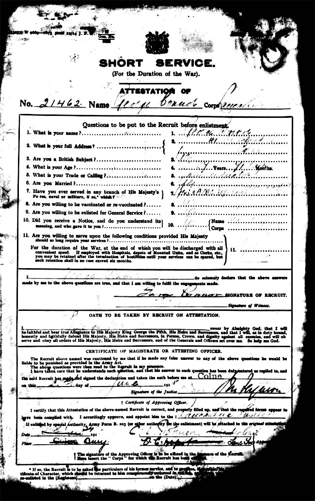 he enlisted at Bury into the 3rd Bn The Lancashire Fusiliers in June