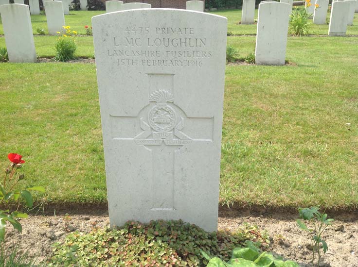 10th Lancashire Fusiliers. Private George Kenyon, of the Lancashire Fusiliers, was killed in action in France, on February 4th, 1917. He resided at 9, Manchester New Road, Middleton, and joined the colours in August, 1915, going to France on February 4th, 1916. He was killed exactly 12 months to the day from landing in France. He was only 19 years of age, and left a widow and one child. Prior to enlisting he worked at the Irk Mill and was an enthusiastic footballer, having played with Newtown. Private Kenyon is believed to be buried at |