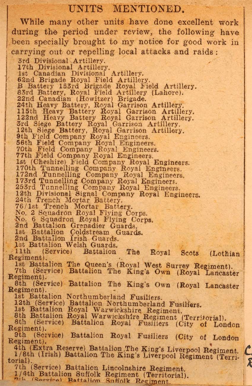 Mentioned in Despatches 13th November 1916. http://www.london-gazette.co.uk/issues/29890/supplements/226 |