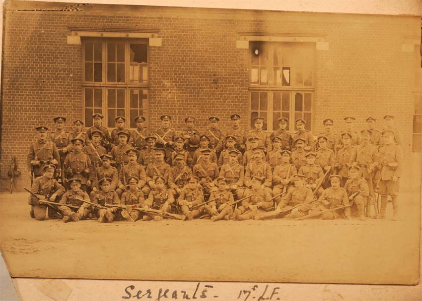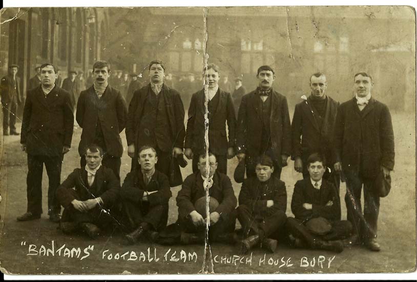 ![]() " My Great Grandfather was in the Lancashire Fusiliers and was KIA in WWI. The photo is of a Bantams Football Team he was in, he was Lance Corporal Thomas Lander 15360 17th Battalion, his grave is at Villers-Faucon Communal Cemetery. http://www.cwgc.org/search/casualty_details.aspx?casualty=235816 He is the first on the left in the back row" Sent in by great grandaughter Natalie Madoc-Jones. |