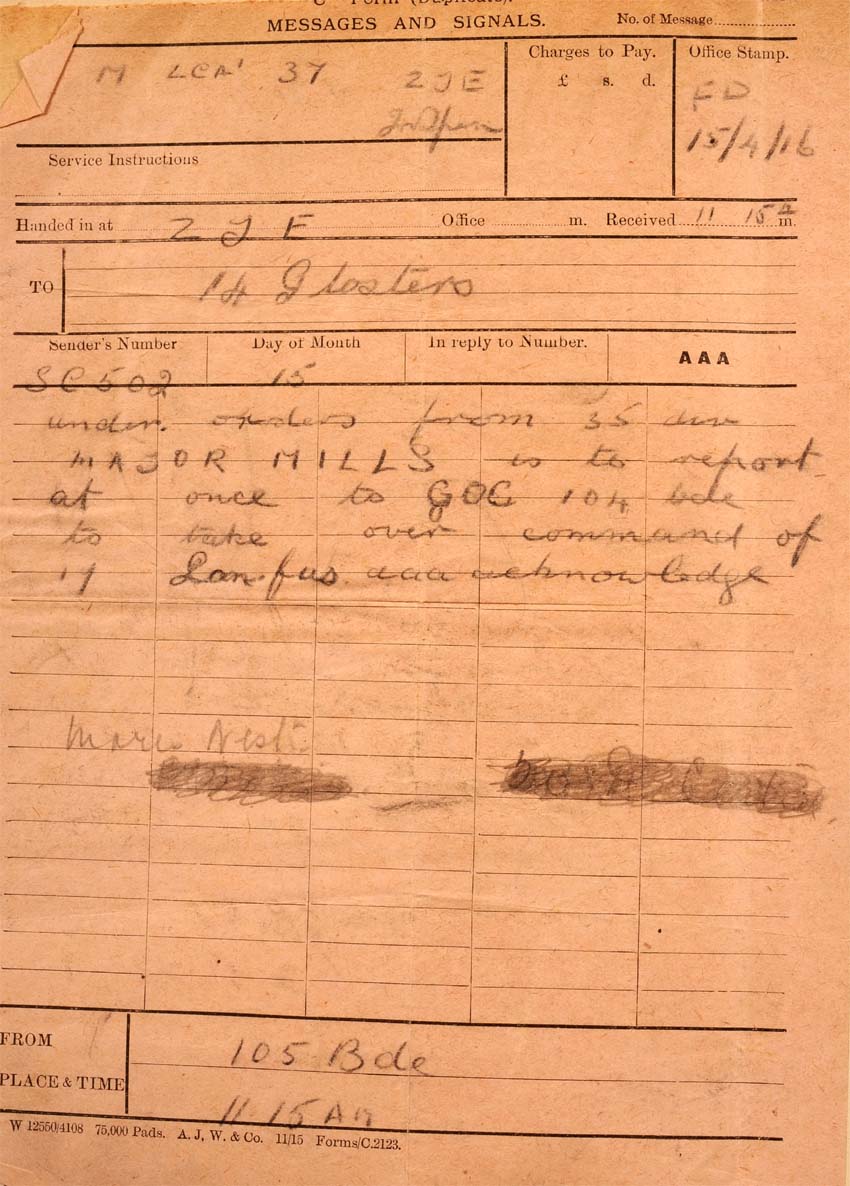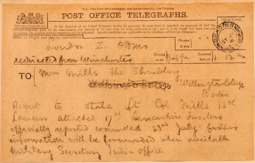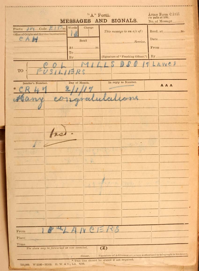 Lt Col Arthur Mordaunt Mills DSO, who took over the 17th LF Bantams from Lt Col W J McWhinnie on the 15th April 1916 to 1918 when he returned to command his own regiment the 18th Bengal Lancers in the Palestine campaign