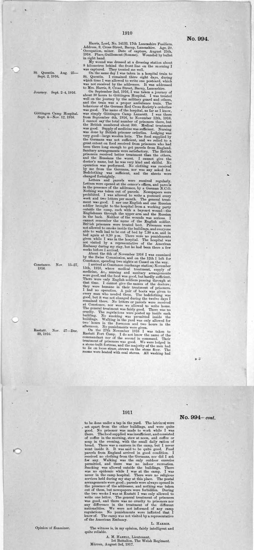 At time of enlistment, Thomas Lander lived in Bolton. He was an iron foundry worker. He was married to Margaret ( Patterson: born Bangor in 1887) and had one daughter).