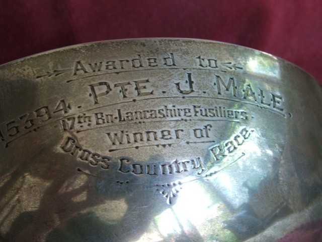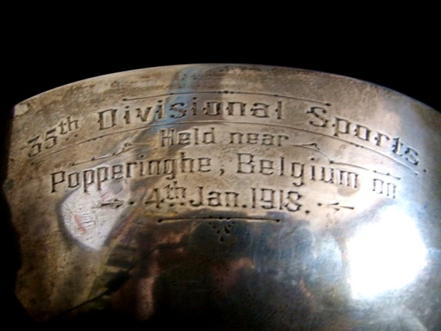 15394 Pte J Male. for winning the cross country race held at the 35 Division Sports Day on the 4th January 1918 at a place called Poperinghe in Belgium. "Pops" was never out of British hands, and was something of a haven behind the lines, although it was subjected to shelling that grew in intensity throughout the war. Here men could find shops, estaminets, restaurants, billets and a hundred different military establishments, as well as the leave trains for England. There were always medical units here: 677 British soldiers who died of wounds at nearby Casualty Clearing Stations lie in Poperinge New Military Cemetery (Click on link) ...as do several men executed for military crimes. |