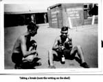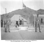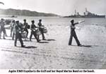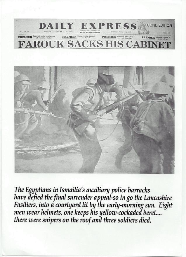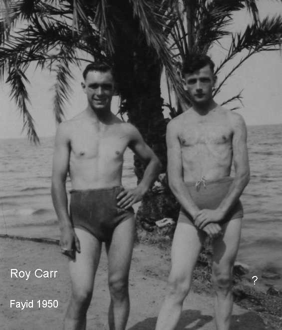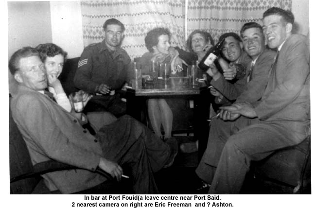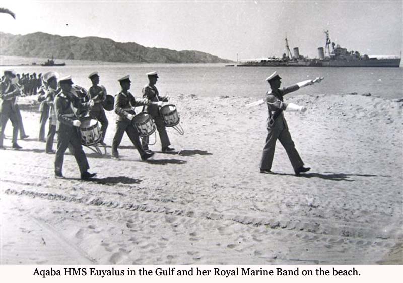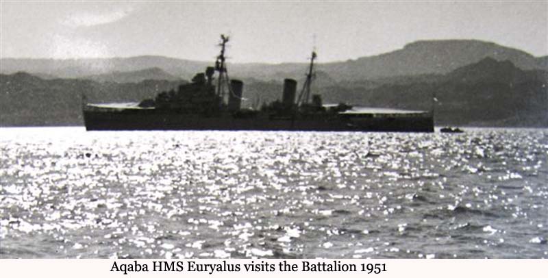 happy day. Our last contact with HMS Euryalus was on 22nd September 1951 when she passed through the Canal heading for Turkey and back to Malta to prepare herself as an escort ship for the King and Queens visit to Australia. The A Coy contingent return by air from Basra Picture; HMS Euryalus in the Gulf of Aqaba The last occasion I can remember that the Royal Navy came to our aid was at the height of the rioting in Ismailia. We all had a big surprise when HMS Chequers steamed into Lake Timsah and dropped anchor. I don't think there was a thing she could really have done at the time but amazing the effect on the morale of the local population was considerable. It really was great in those far off days to know we had a splendid Royal Navy who like ourselves were always ready for a scrap. Maurice Taylor |