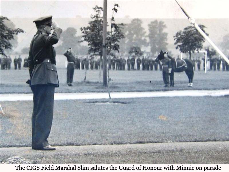 ![]() Capt Derek Large, Lt Euan Inchbald ( the best shot in 1LF) with CSM "Smudger" Smith as right marker. Capt Charles Gaw Kings Colour, Lt Trevor Philips Regimental Colour, Maj Gen Surtees inspecting, C Sgt "Spud" Murphy escort to the Colours. |