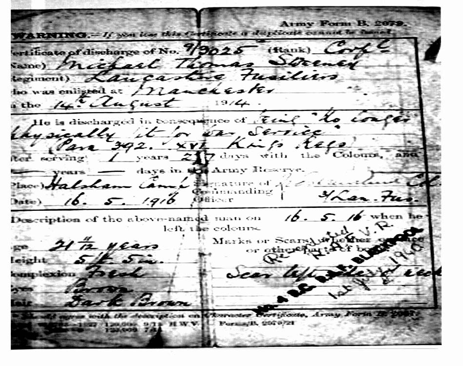 Michael Thomas Sweeney enlisted into the 1/5th Bn Lancashire Fusiliers in August 1914.