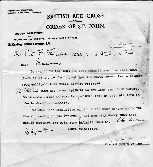 of his capture, as he was probably took prisoner at Gallipoli in 1915. |