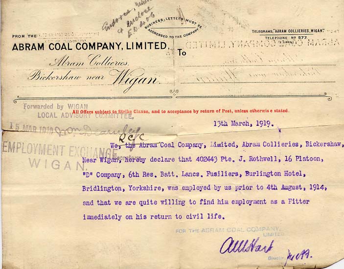 6th Battalion Lancashire Fusiliers, whose home address was Factory Street,