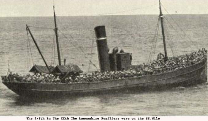 The 1/6th Bn The XXth The Lancashire Fusiliers were on the SS.Nile The 1/6th Lancashire Fusiliers