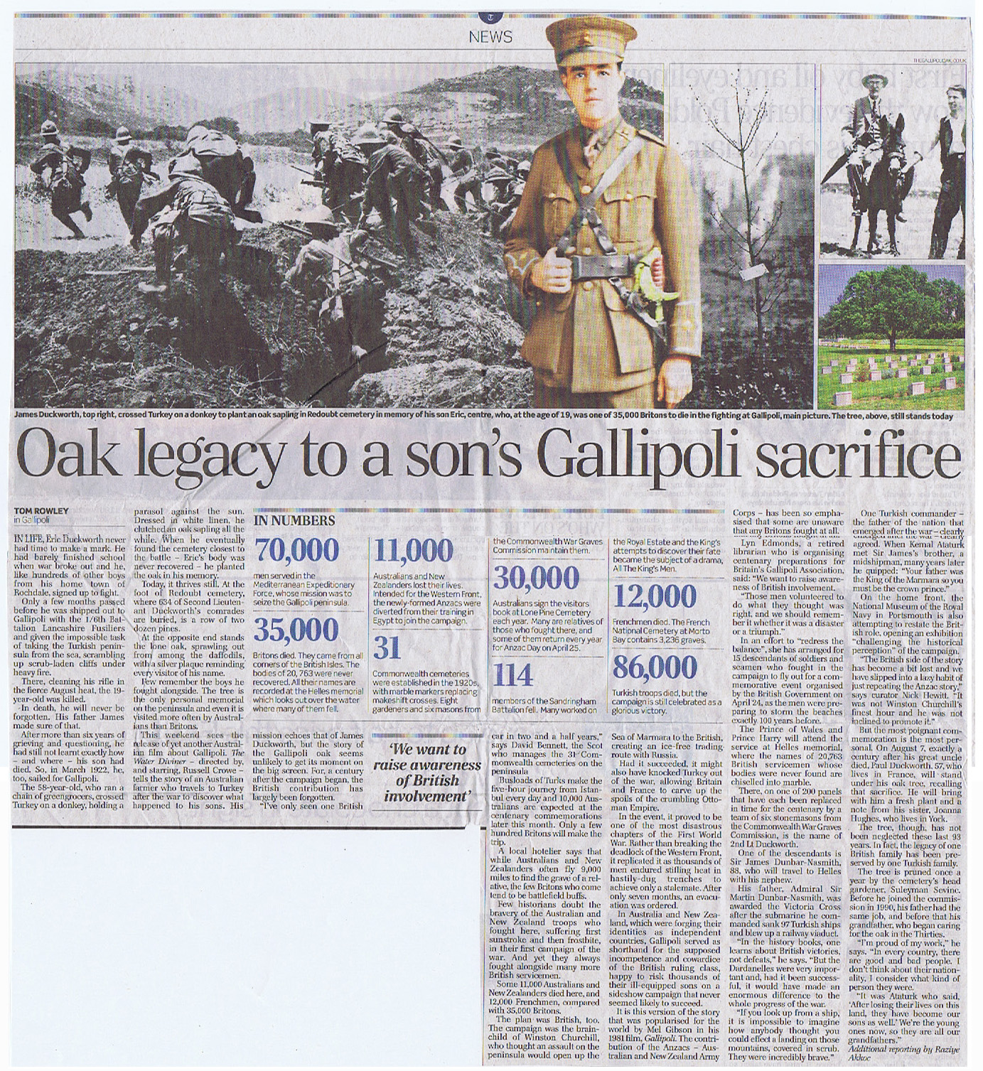 "One thing that has always stuck in my mind was during the First World War. As a boy I saw a postman sitting on the kerb at the top of Cheapside, crying and sobbing like a child and wiping his tears away with a big red and white handkerchief. He had been delivering war office (death) telegrams to nearby cottages. "As he cried the women in their houses were screaming, except one white-faced, shawled and clogged old lady who sat on the flags next to the postman and simply held his hand." What the late John Bagot describes so vividly is the news returning to the town of the catastrophic local losses at Gallipoli in 1915. As reported last week, around 250 Middleton territorials had volunteered for service overseas at the outbreak of WW1. They became part of the 1/6th Lancashire Fusiliers battalion and we pick up their story as they enter the maelstrom of the campaign to defeat the Turks on the small peninsula of the Dardanelles called Gallipoli. The disaster of the campaign has been well documented over the years, not least by the Australians. Their sacrifices, fighting for the first time under their own colours, resulted in a huge step towards the establishment of Australia's own national identity and international recognition. However, the fact is often overlooked that the British and French were just as deeply committed. We suffered 65,000 dead and wounded, the French 27,000 and the Australians 26,000. The invasion of Gallipoli was planned after the Turks entered the war on the side of the Germans in late 1914. If the straights of the Dardanelles were conquered, we could have warships in Constantinople in days and deliver a quick and resounding blow to the Turks, while also opening another vital link with our Russian allies via the Black Sea. In principle, the idea (in which Winston Churchill, then at the Admiralty, was a major player) was sound. In practice, things went wrong from the start. It had initially been hoped that the navy could deal with the clearing of the straights themselves and sail victoriously into Constantinople. They would bombard resistance at the gateway to this narrow sea waterway (Gallipoli) and surge through. However, brave resistance and mines foiled the scheme and a call was made for a land force to deal with the Turkish troops fighting so tenaciously. On April 25, 1915, 30,000 allied soldiers would be landed on Gallipoli, but many never even reached the beach. A regular, or professional, battalion of The Lancashire Fusiliers was dropped in the shallows only to run into belts of barbed wire laid below the waterline. While trapped on the wire, they were slaughtered by machine gun fire from the cliffs surrounding the bay. The battalion was to win six Victoria Crosses "before breakfast" in successfully fighting for control of the beach head. Among these professional soldiers were a number of Middleton men who survived the landing, but the likes of Private Herbert Simpson, of Mills Hill Road, and Lance Corporal John William Horrocks were to pay the ultimate sacrifice later in the campaign Despite some early signs of promise, and a number of lost opportunities, the situation on Gallipoli soon came to mirror the stalemate on the Western Front - men sat in trenches just a few dozen yards apart and mounting costly attack and counter-attack against heavily defended positions. The only hope now was that sheer volume of numbers might tip the balance; and so it was that the 42nd East Lancashire Division, including the Middleton Territorials, found themselves moved from Cairo and rowed ashore in the evening of May 5. Unlike their professional compatriots, the landing of the Lancashire territorials passed without incident. But their good fortune wasn't to last, as the Middletonians found themselves rushed into front-line trenches and going "over the top" within less than 24 hours. "In the morning, about 11 o'Clock, we made an attack across open country but we were swept down by heavy machine gun fire and we lost heavily," writes Private Walter Hosker to his father at Pool Bank Street, Rhodes. Corporal William Aspden, another Middleton man, who worked on the trams at home, writes to his wife: "By gum, it was like hell. Bullets were whistling all around me and shells were bursting. It was murder. Our officers are a credit to England." The 1/6th Lancashire Fusiliers (made up of the Middleton lads and fellow part-time soldiers from Rochdale and Todmorden) gained 400 yards of ground; the greatest advance made by any unit that day. More importantly, the ground was held. Still, it had proved costly and four Middletonians were among the dead, with many more wounded. Among the fatalities were Percy Beaman, a 21-year-old parishioner of All Saints Church who lived at Rhodes, and Sergeant James Burgess of Middleton Junction, who worked at JW Lees Brewery. Around 50 more local lads were to follow in their footsteps before the year was out, and a large number of them were to be killed just weeks later, on June 4, attacking the same objective as this first bloody charge - the small village of Krithia. Krithia was an important strategic objective that lay just below the commanding heights of Gallipoli. From there you could see what was going on on most of the peninsula. This time the Middleton men would have to charge across about 100 yards of open land through artillery and machine gun fire and into belts of barbed wire. It was carnage and 10 local men were to die, including the Connolly brothers - Frank was aged just 19 and Thomas was 26. They lived in Sadler Street with their parents and siblings. Private Walter Hosker picks up the story of the attack: "We captured and killed some thousands in a bayonet charge. At night the Turks tried to retake this trench and came up in droves with fixed bayonets shouting 'Allah, Allah'. We fixed our bayonets and jumped out of the trench and charged." Sergeant James Dean, of Wood Street, Middleton, adds: "We had a terrible time. We made a general advanc