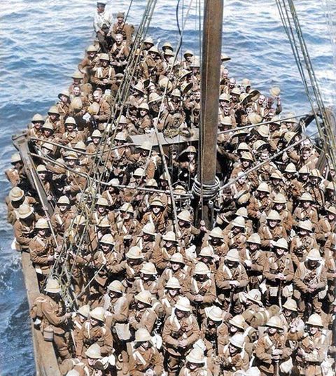 at Gallipoli on the 5th of May 1915. And just an excuse to post again the wonderful colourisation of the Middleton men en-route to the Gallipoli beaches. Our man Jack could be one of the men. Soldiers Died in the Great War lists his name as Jocks Grimshaw, could be a nickname or just a typo. Jack's brother Harold was killed a year later in 1916. |