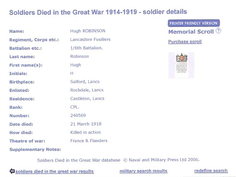 Private Jack Grimshaw 1/6th Lancashire Fusiliers One of the original Middleton Territorials who left