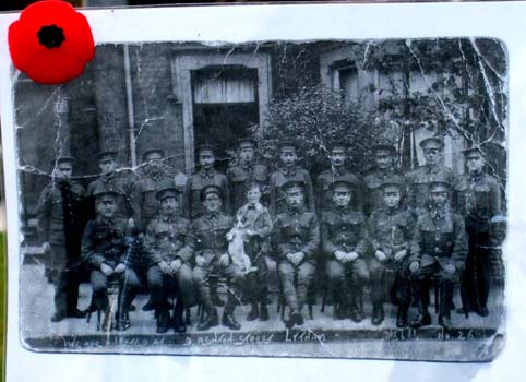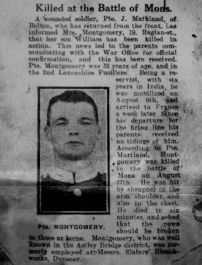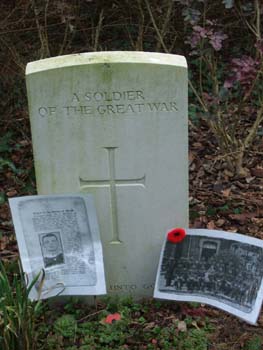 I hope that you are well. Last week I went with three friends to bimble round WW1 &WW2 battlefields, my own particular choice was to look at the area of Pilkhem Ridge in the Ypres Salient where 38th Welsh Division had attacked and where my father was wounded. Another visit we made was to the WW1 CWGC cemetery, St Symphorian, on the outskirts of Mons. There we found the headstone of an unknown soldier where someone had placed two cards, one of a newspaper cutting and one of a photograph. It would seem that whoever placed these cards did so in memory of a Lancashire Fusilier. I attach photos of the headstone and cards and leave the rest of the conjecture up to you!!!!! I hope that you find them of interest. Best wishes, John Hickie . |