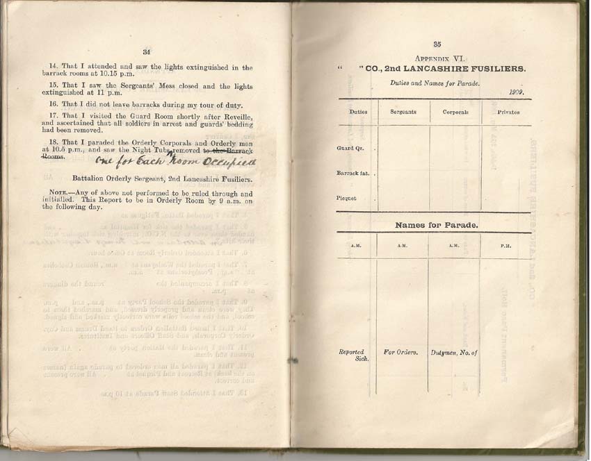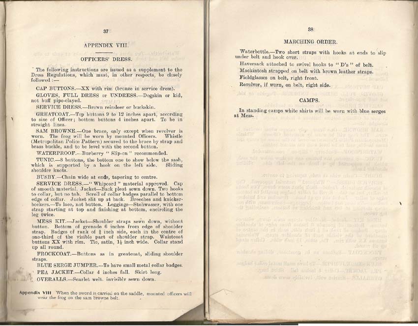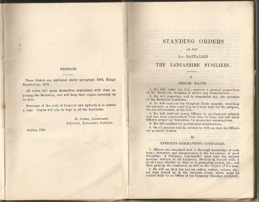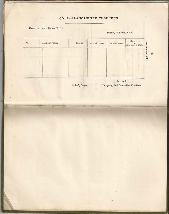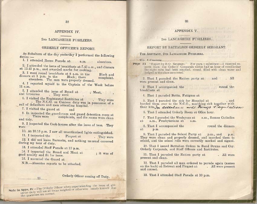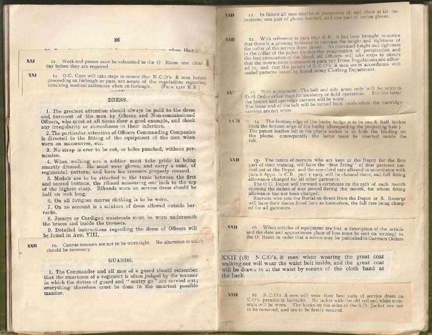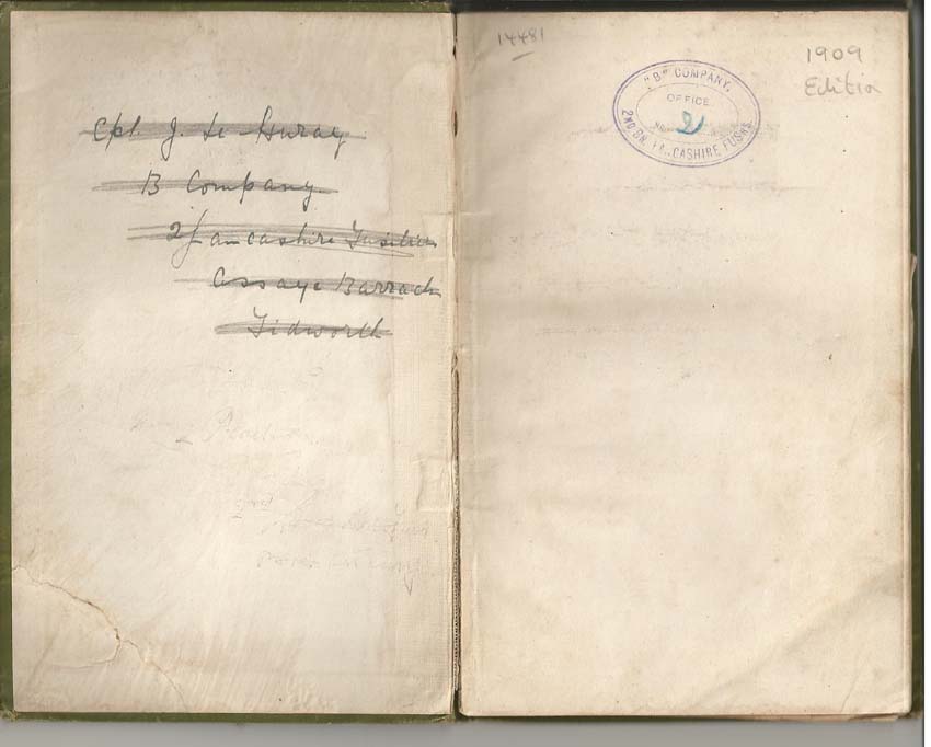 Both the pre & post 1908 pattern greatcoat is being worn in this photograph. The pre-08 coat was grey but was changed to khaki in that year. (which pretty accurately dates the photo) The photo is interesting in that it shows the red & white cloth title that was worn on the earlier grey greatcoat. In this case 'LF' above 2 ; LF had four regular battalions until circa.1906. The new 1908 khaki greatcoat has the famous brass shoulder title on the new shoulder straps. The red & white cloth title being transferred to the new 1908 pattern 'European' service dress. Which over the course of the next 50 years evolved into the battledress of 1960. The colour of the new 'European' service dress (and greatcoat) was to match the 'unpolished brass' of the buttons. The bugle cords of the duty bugler would be green as representing a 'non-Royal' regiment. (Royal regiments being permitted bugle cords in the 'Royal livery' colours of royal blue, gold and red) At this time moustaches were compulsory for the British soldier. This means that some of the soldiers on the photo are probably younger than they appear. The 'well fed' young duty bugler is probably a 16 or 17 year old. Also note that medals weren't/aren't worn on the top or greatcoat. This photo was taken only 6 years after the Boer War had ended This can be seen today on our 'well wrap up' Royal Family when attending State occasions. "After the Crimean war, regulations were introduced that prevented serving soldiers from shaving above their top lip, in essence making moustaches compulsory for those who could grow them. This remained in place until 1916, when the changing nature of warfare, in particular the need for a smooth seal for the wearing of a gas mask, meant that the regulation was abolished by an Army Order dated 6 October 1916." Sent in by Bill Duggan. |