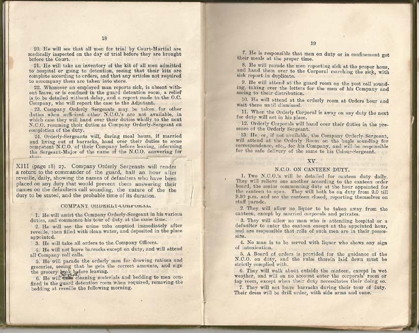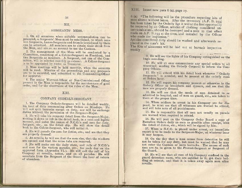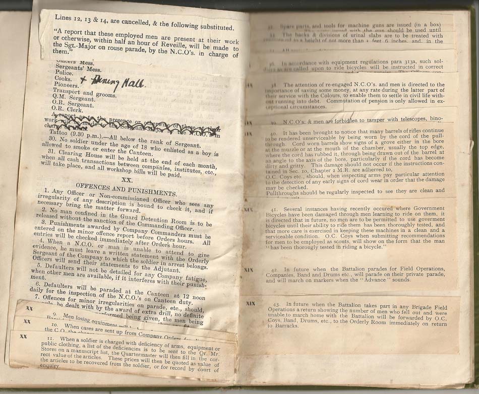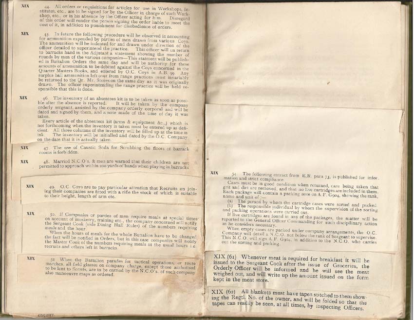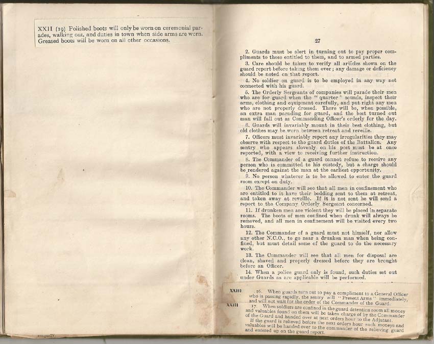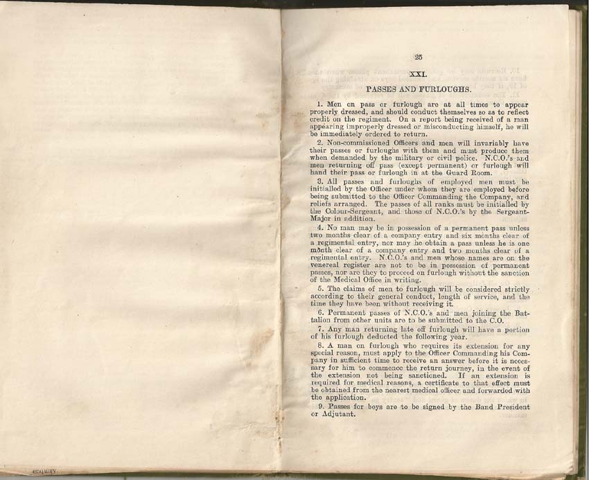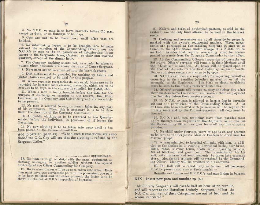 Both the pre & post 1908 pattern greatcoat is being worn in this photograph. The pre-08 coat was grey but was changed to khaki in that year. (which pretty accurately dates the photo) The photo is interesting in that it shows the red & white cloth title that was worn on the earlier grey greatcoat. In this case 'LF' above 2 ; LF had four regular battalions until circa.1906. The new 1908 khaki greatcoat has the famous brass shoulder title on the new shoulder straps. The red & white cloth title being transferred to the new 1908 pattern 'European' service dress. Which over the course of the next 50 years evolved into the battledress of 1960. The colour of the new 'European' service dress (and greatcoat) was to match the 'unpolished brass' of the buttons. The bugle cords of the duty bugler would be green as representing a 'non-Royal' regiment. (Royal regiments being permitted bugle cords in the 'Royal livery' colours of royal blue, gold and red) At this time moustaches were compulsory for the British soldier. This means that some of the soldiers on the photo are probably younger than they appear. The 'well fed' young duty bugler is probably a 16 or 17 year old. Also note that medals weren't/aren't worn on the top or greatcoat. This photo was taken only 6 years after the Boer War had ended This can be seen today on our 'well wrap up' Royal Family when attending State occasions. "After the Crimean war, regulations were introduced that prevented serving soldiers from shaving above their top lip, in essence making moustaches compulsory for those who could grow them. This remained in place until 1916, when the changing nature of warfare, in particular the need for a smooth seal for the wearing of a gas mask, meant that the regulation was abolished by an Army Order dated 6 October 1916." Sent in by Bill Duggan. |