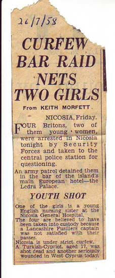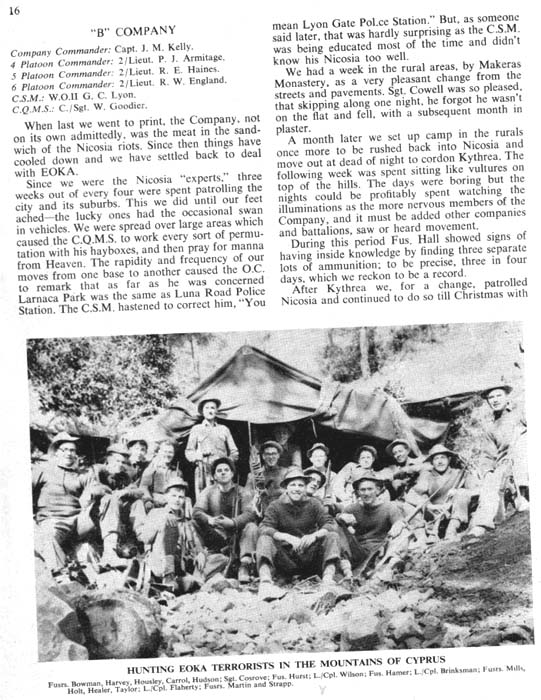 of B Coy 1LF stationed at Kirmia Camp just outside Nicosia. Joe Kelly,