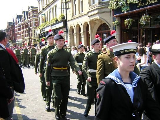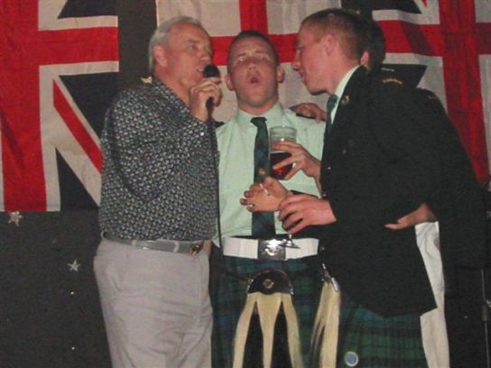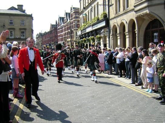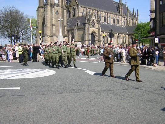 the alleged informal Regimental March; The Yellow Rose of Texas is being played. |