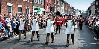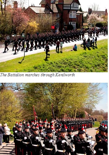 of Fusiliers being selected to meet HRH The Prince of Wales. Kenilworth Parade. The Second Battalion were the first soldiers to march into the medieval fortress in the town since the English civil war over 360 years ago. The Mayor and his council provided a wonderful reception in the grounds of the castle, a private marquee with free beer and a "Hog Roast" kept all the marchers happy. During the reception the Mayor and councillors of Kenilworth bestowed an award for conspicuous Bravery on the Battalion, the highest award a civic council can award in recognition for bravery. This now hangs in RHQ in the Tower of London. (Parade photos Courtesy of www.sallyevansphoto.co.uk). St Georges Day. As I'm sure every Fusilier past and present is aware