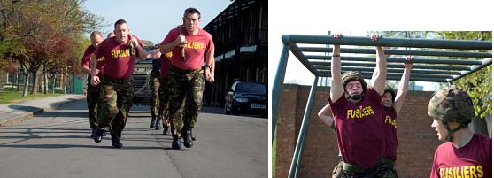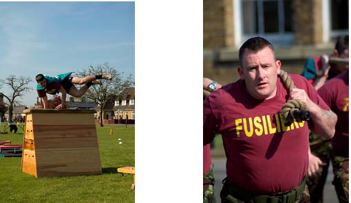 the familiy of Cpl Etchells CHARITY FOOTBALL MATCH - 2 RRF VERSUS Eon NETWORK At a hard fought football match held at the Coventry City Football Ground on Friday 7 May, the greater fitness and football ability of the 2nd Battalion team managed by Captain Will Blinco shone brightly against a civilian team fielded by the eon (electricity providers) firm. The score line was 3 - 1 to the Fusiliers. This charity event organized by Mrs Carol Valentine, mother of the late Sgt Simon Valentine, was an outstanding occasion and a fitting tribute to the memory of the "Magnificent Seven" Fusiliers who were killed in Afghanistan last year. The Regiment is deeply grateful to Mr Paddy Healy of eon Network (and a former Fusilier) who was also a main driving force in the organization of this excellent occasion which was attend by The Right Honorable Bob Ainsworth, The Lord Lieutenant and many serving and former Fusiliers. In all over 2000 people attended and the Fusilier Aid Society benefited considerably. Eon as a Company must also be thanked for the tremendous support and generosity they showed. A fuller report will in the next Fusilier News. 1 RRF During April all ranks enjoyed an excellent party on St George's Day. After traditional morning gunfire and a very entertaining Battalion church service (You don't often see a Padre rapping!) the rugby pitches had a festival atmosphere as the Fusiliers celebrated in style. Y Company was tested in a hard-fought final of the Newcastle Cup Inter-Company football, and the match was tied at 1-1 despite Y Company setting up home in the HQ Company goalmouth. It took a penalty from a handball for Sgt Carr to step up to the spot and drill the ball into the back of the net, handing Y Coy a 2 - 1 victory. This gave LCpl "Tomma" Thompson the chance to finally lift the trophy after years of trying! Weeks of practice paid off for the QM department as they triumphed in the "all-comers" volleyball competition, with the BHQ team putting in a particularly valiant performance. Finally the heavy-weights of Capt Dan Kennedy, CSgt Garry Tarbuck, CSM Thomas and a strong X Company team battled through to triumph in the inter-Company tug-of-war. Y Coy triumphed in the Champion Coy Orienteering Competition with Fus' Chilton and Butterworth, O'Donoghue and Shadbolt coming first and second respectively in the pairs category. Y Company travelled to Castlemartin ranges for their first WARRIOR shoots since arriving in Tidworth, and all crews were eager and ready to begin hunting. The 30mm and 7.62mm guns were put to good use and, blessed with some unusually good weather, even the newly qualified gunners put in a strong performance. Whilst four WR crews achieved HPS their 'dismounts', led by the OC, got to grips with the tough new Annual Combat Marksmanship Test (ACMT - replacing the APWT) and some live firing tactical training. The CO's Bugle Competition was also held recently, and was the culmination of a long week of rehearsals and preparation for the Drums Pl. The judges included the Commanding Officer, the Drum Majors of the First and the Second Bns and two guests from the Army School of Ceremonial. The standard of bugling was very high across the Platoon, but congratulations go to; Dmr Chris Greenalgh (CO's Bugler), LCpl Adam Arnold ( Adjutant's Bugler), Dmr "Kenny" Kemp-Ambler (RSM's Bugler) and LCpl Kane Andrews who came fourth. Many thanks to Cpl Hennagan 2RRF who was released by the Drums Wing at ITC (C) to instruct 7 Pl prior to the competition. The Battalion is looking forward to hearing various bugle calls around camp in the near future - at least in the short gaps between exercises. At the end of April members of Z Company were selected as participants for a two-week burden carrying trial at ITDU Warminster, aiming to test and assess the vulnerability of soldiers carrying varying weights. The trial involved an initial shoot, a timed agility course and a 5k march before then repeating the shoot and agility course, all whilst carrying varying configurations of weight, from 6 to 60kg. Needless to say, a few dark looks were thrown towards the civilian scientist who was complaining about being hot and uncomfortable, whilst walking alongside the men on the march, in cropped trousers and sunglasses! Participants were also engaged with TES (laser simulation) kit whilst on the agility course. Notable performances came from Fus' Mead and Wright - both being hit very few times - however Fus Brown was not so lucky, being hit 10 times whilst only moving 25m! Everyone who participated enjoyed the task (particularly seeing the new kit currently being designed) and put in a strong effort considering the weights carried. The mighty 1RRF Triathlon team recently attended the 4 Div Sprint Distance Triathlon held at Bovington. Under the steady guidance of Capt Dave Gifford, a veteran Triathlete, the team of five swam, biked and ran to complete the event, all putting in strong performances against the lycra swamped field of participants. The team is now looking forward to next month and the Army "Tri" Championships! The new accommodation blocks which have been rapidly sprouting around camp were finished this month. They provide 160 new bed spaces in spacious 1-man en-suite rooms, with communal TV areas, and they have been very popular with their new occupants. The older blocks will continue to undergo renovation to transform them into similarly plush bedrooms for the livers-in. 1 RRF are looking forward to deploying on further exercises in May, and Y Coy will deploy to Brecon on Ex EPYNT FUSILIER to dispel the "Brecon myth," sharpen light-role skills and culminate in a trip across Pen Y Fan. Most of the Battalion will also be climbing, mountain biking and hill walking in North Wales during an exciting two-week Adventurous Training camp. You wouldn't be paid to do that as a civilian! 2 RRF During April the 2nd Battalion has been focused on
