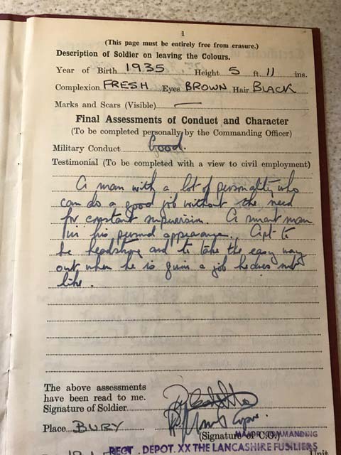 the Lancashire Fusiliers. Dad was a man of discipline and would fondly