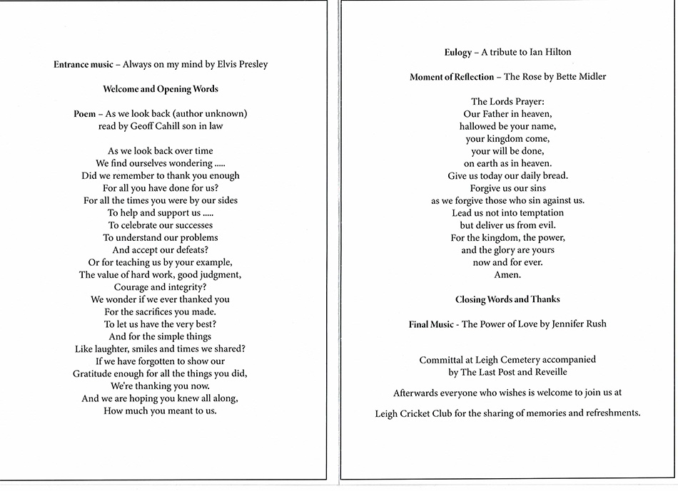 mention of his son-in-law, Geoff and of his brother and sister-in-law,