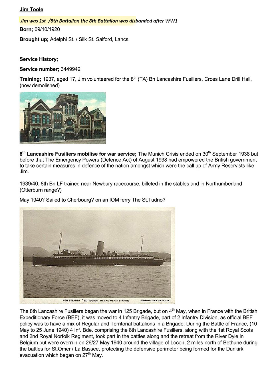 in pensioner at Broughton House 1st / 8th Battalion Lancashire Fusiliers WW2