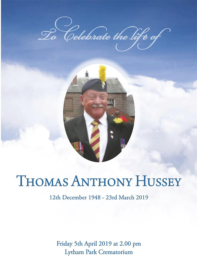 Thomas Anthony Hussey - or Tom as he preferred - was born in Manchester