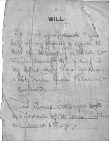 Mr. P. Sheridan has sent in these pics of his Grandfather, during WW1. Also included is his will, which is a little crude, but does the job intended! A bit different from the pre-printed wills of my time in the 1960s. There are two group photographs in case anyone recognises a friend/relative. A long shot, but you never know! |